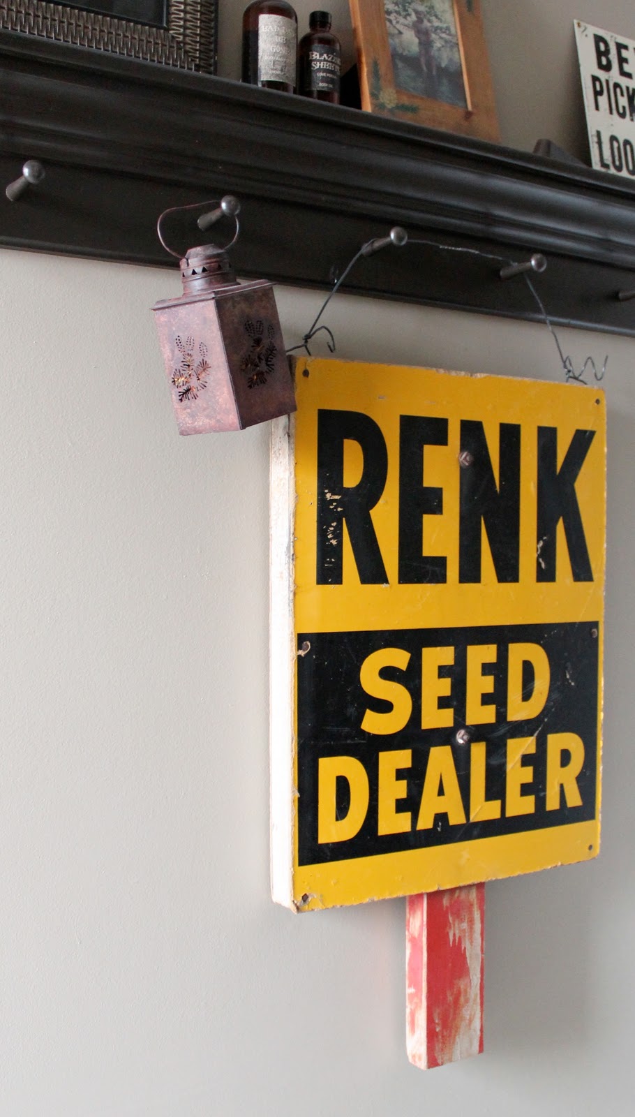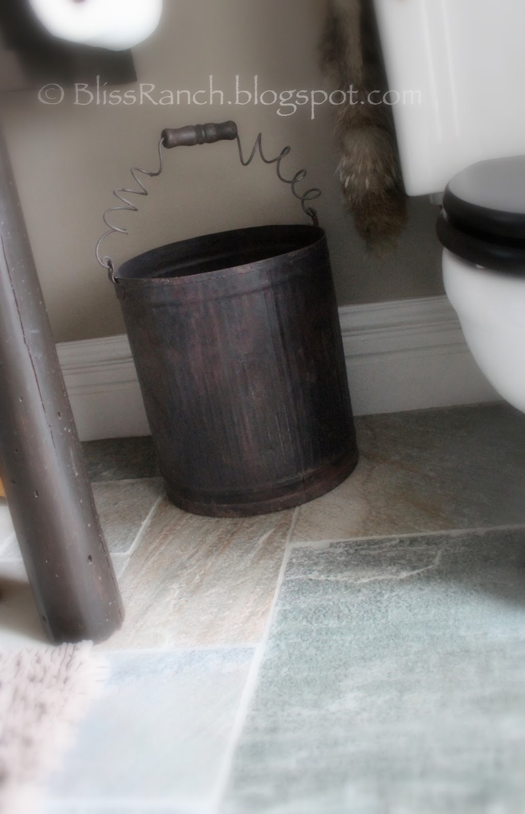 But first, recall yesterday's post about my treasure (on the left) and the seed sign. Both ended up in the guest bath. I love my new little trash can, and the seed sign that never had a home was an easy fix, hang it with wire.