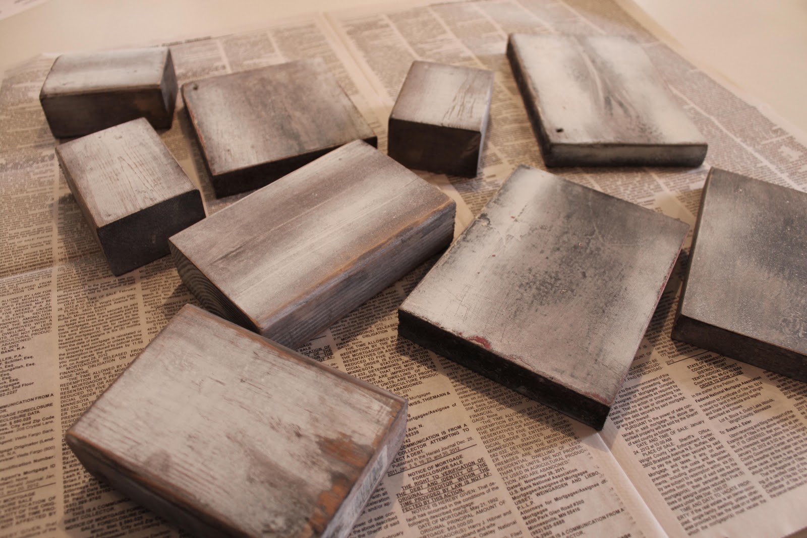 OK, so back to this crafting stuff.... it started yesterday with the snowy trash attached wood scraps I pulled out of our garage trash. I stained them, sanded them, spray painted them, and they were looking a bit Halloweenish. So I painted and sanded them again. At this point they are my friend. They were good, especially considering they came out of the trash. I was determined this project was not going to cost anything, and it didn't, we had everything laying around. I saw some really really cute ones on burlap at the Junk Market yesterday - they were my inspiration. I had no burlap. Mine don't compare. (In defense, the burlap would of helped with the stenciling issue).