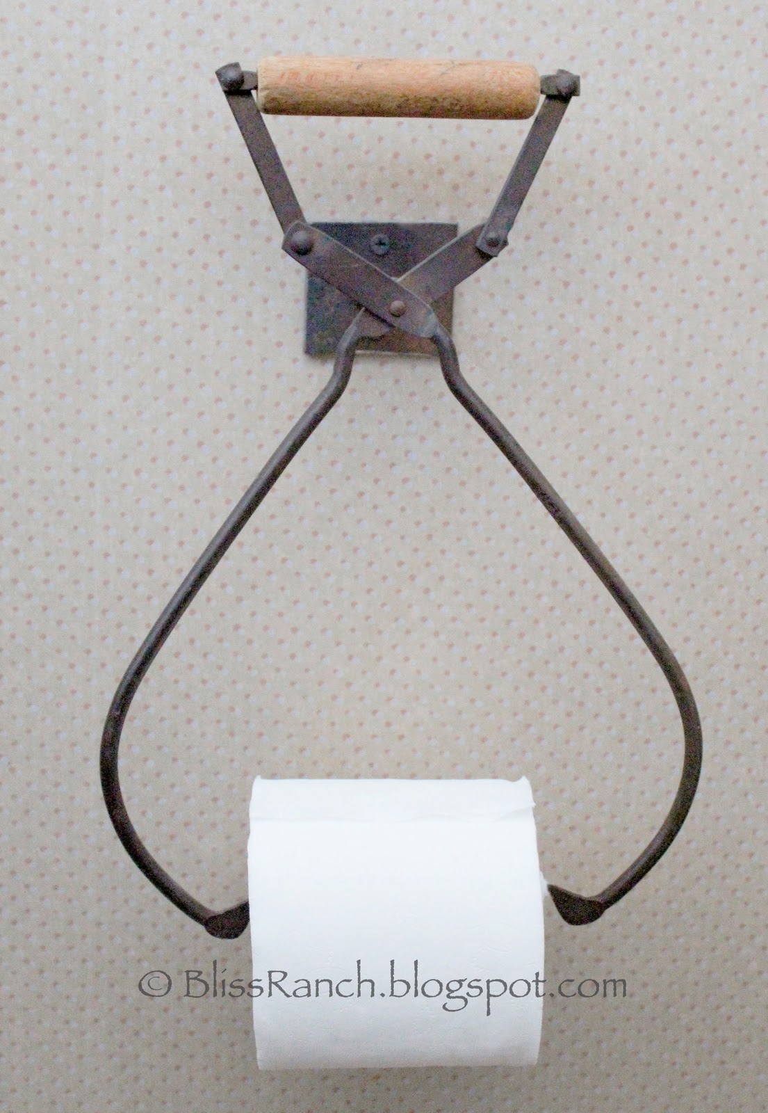 We have a re-purposed ice tong toilet paper holder in the mud room bath.