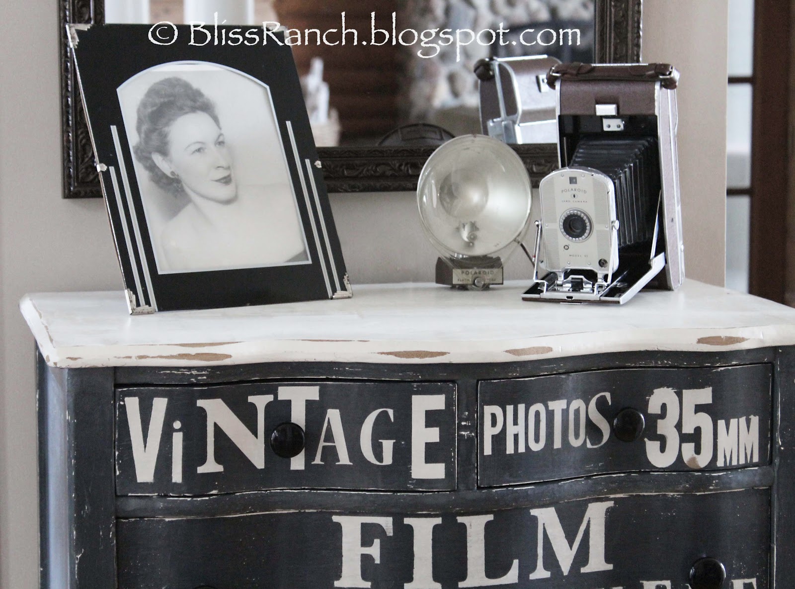 Girl you rock!!I am amazed beyond words. This one will make you smile everytime you go for the camera. I agree with one comment ,an old window with Black and Whites of your family would be a perfect accent with the vintage cameras in front. I sold my collection of camera's and can say I still miss them. I had around 18 they made a cool statment. I want to find a dresser like this and do a texas outline that wraps the front and off to the sides. Then put names of the cities across each drawer. I think you talked me into a graphite and white. But AUSTIN will be in ? color....I'm thinking turquoise. See you inspired me Oh yea and line the drawers with Texas maps ...