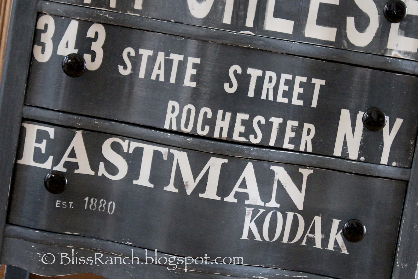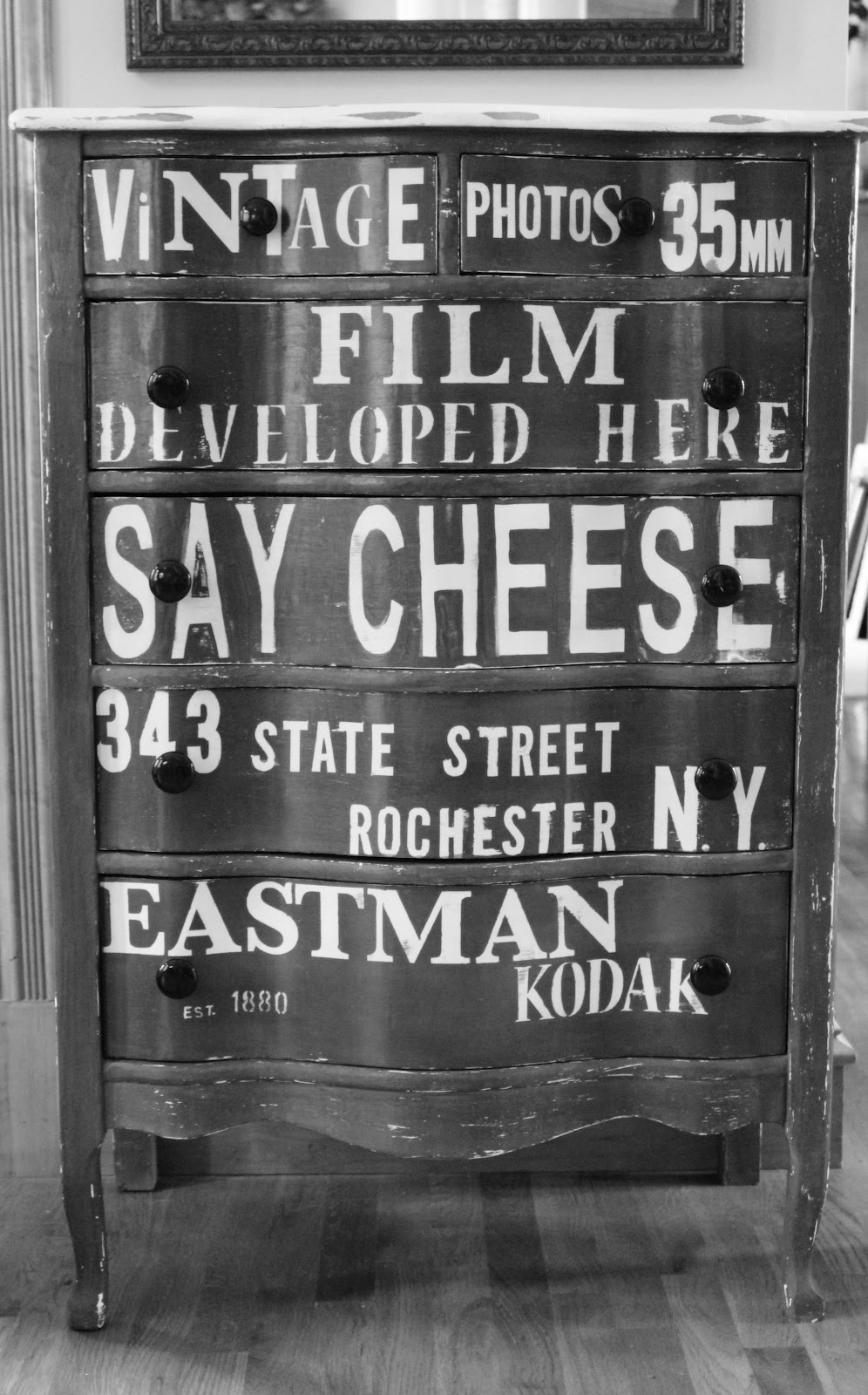 I went with Kodak on the dresser anyhow. K O D A K had less letters to paint, that is till I added in the Eastman part.