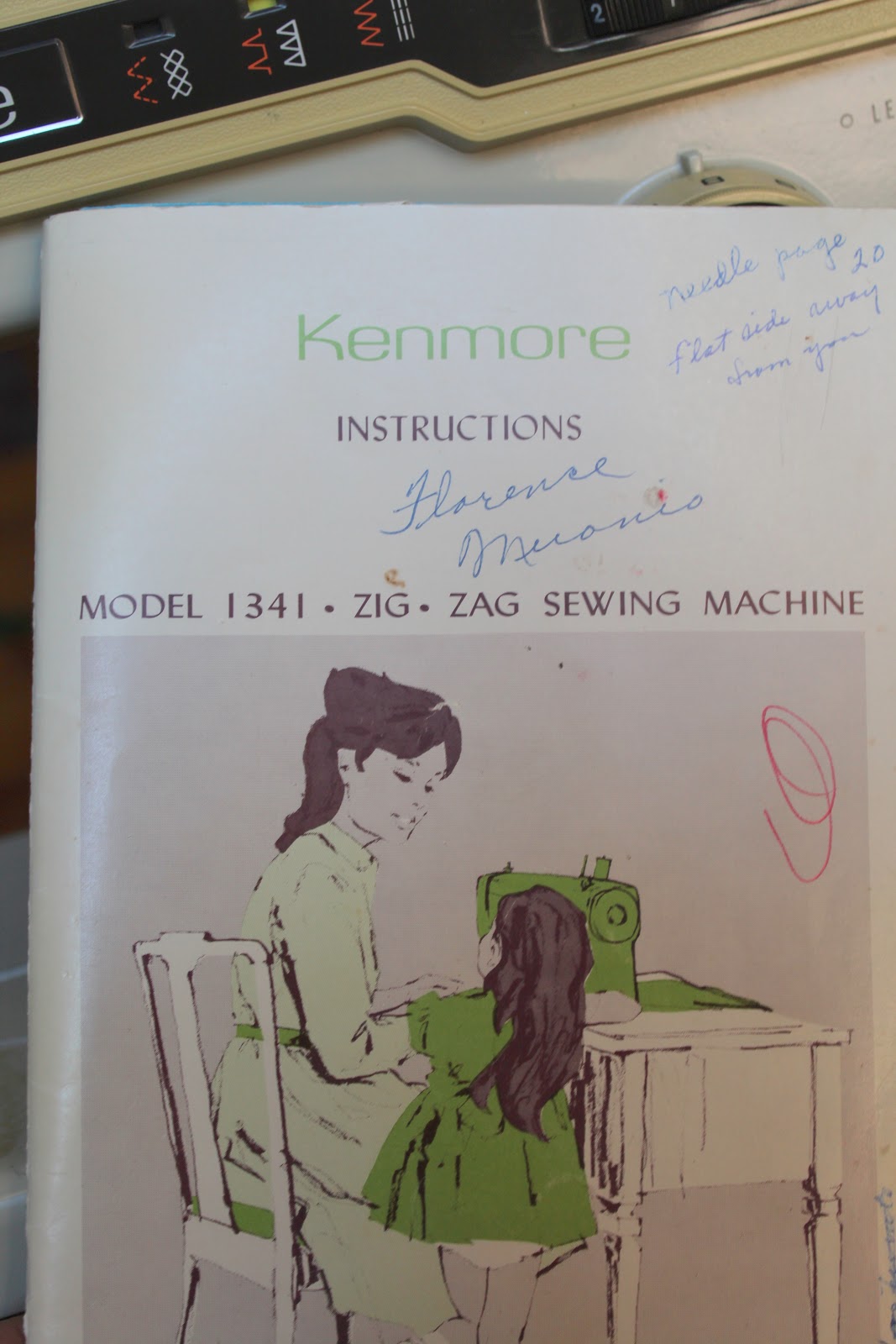 That sewing machine looks my old Kenmore that is at least 42 years old, the book is the same as mine. My husband bought it for me at Sears awhile after we were married and it's still my favorite machine. I have a newer one that is a booger for me to thread and too many naughty words are said and feelings of wanting to throw the blasted thing out the window but it's too heavy. My eyes aren't what they used to be (worse) and my hands are arthritic. Excuses, excuses huh? lol Keep up the good work.