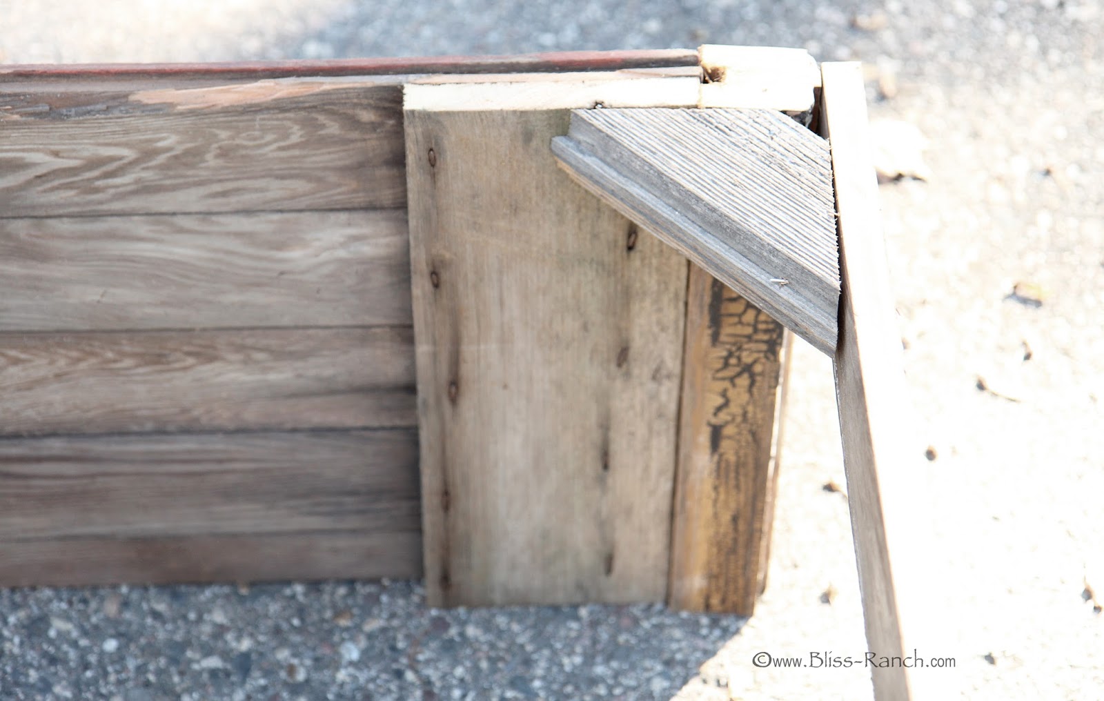 It was a simple build, easy to put together. Braces in the corner using some old wood, cut the sides to the desired height, nail it together. The top floats on the base and I can use either side of it as the table top.